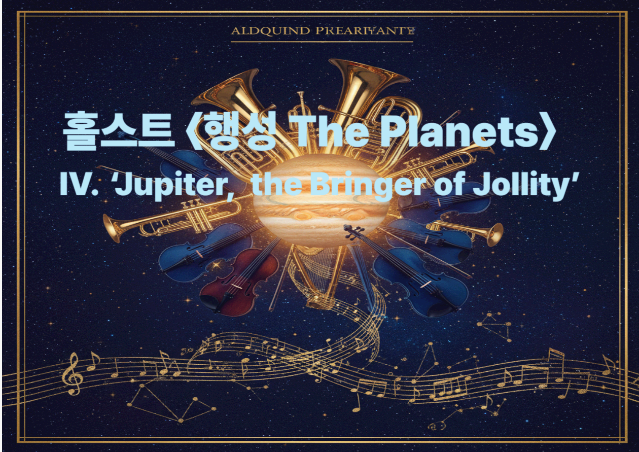 핵심 요약'Jupiter'는 홀스트가 '점성학적 성격(쾌활함/풍요)'을 음악으로 번역한 악장이다.특히 중간의 장엄한 선율은 훗날 'Thaxted'로 불리며, 영국의 애국 찬가 (1921) 선율로 널리 알려졌다.같은 선율은 럭비월드컵 테마송 (1991)로도 세계적으로 확산됐다.목차1. 이 곡이 특별한 이유: '행성'이 아니라 '성격'을 그린 음악2. 작품 정보 & 악장 성격3. 'Jupiter'의 음악적 분석: "쾌활함"을 만드는 리듬·조성·오케스트레이션4. 'Thaxted' 선율: 한 구절이 애국가·월드컵 테마가 되다5. 감상 포인트 1. 이 곡이 특별한 이유: '행성'이 아니라 '성격'을 그린 음악홀스트의 (Op.32)는 천문학 교과서가 아니라, 점성학(astrology)의 성격 묘사에서 출발한 모음곡..