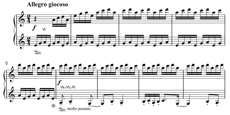 - 시작 성격: Allegro giocoso(장난스럽게, 생기 있게)