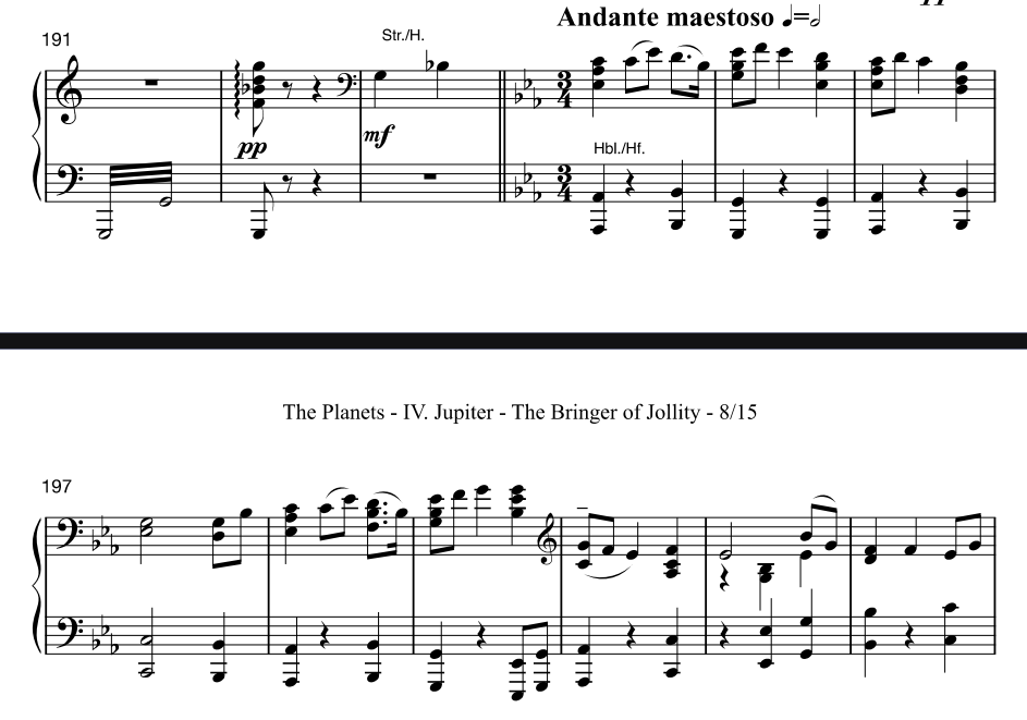 👉 'Jupiter' 피아노 편곡 악보(출처: imslp/org)