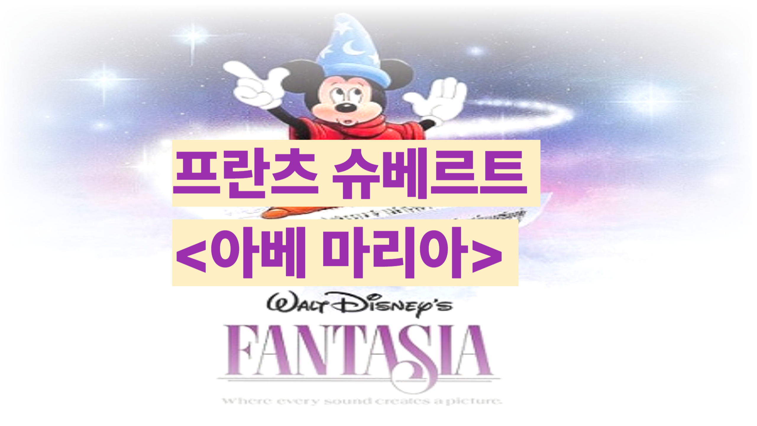 목차1. 영화와 곡2. 작곡가 /작품 소개3. 음악적 분석4. 감상 팁1. 영화와 곡디즈니의 판타지아(Fantasia)는 애니메이션과 클래식 음악을 결합한 혁신적인 예술 영화로, 1940년 개봉 당시 "움직이는 교향곡"이라 불렸다. 마지막 장면에 흐르는 슈베르트의 는 영화 전체의 정화를 상징하는 음악이다. 전반부에는 무서운 악마 '체르노보그'가 등장하는 무소르그스키의 이 사용되고, 그 어둠을 걷어내듯 새벽의 빛과 함께 '아베 마리아'가 이어진다. 촛불을 든 인물들이 숲속 길을 따라 행진하는 장먼은, 음악의 경건한 울림과 어우러져 인간의 구원과 희망을 시각적으로 표현한다. 👉 영화 판타지아(Fantasia) 환타지아(애니메이션)월트 디즈니 애니메이션 스튜디오 의 세번째 장편 애니메이션이다. 개봉 당시에..