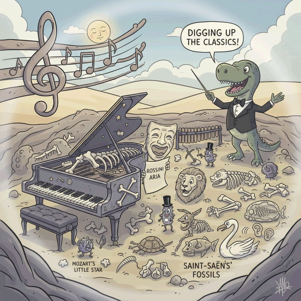 목차1. 작품 개요2. 곡의 구조와 풍자 포인트3. 감상 포인트 요약 1. 작품 개요'화석(Fossiles)'은 생상이 과거의 유명 멜로디를 인용해"죽은 음악"을 되살린 곡입니다.모차르트 작은 별, 롯시니의 오페라 아리아 등이 인용되어 있습니다. 생상은 진지한 고전음악조차 시간의 흐름 속에서는 "화석"이 될 수 있음을 유머로 표현했습니다.웃음 속의 철학, 생상의 가장 지적인 풍자입니다. 2. 곡의 구조와 풍자 포인트클라리넷, 실로폰, 현악이 등장실로폰의 "뼈가 부딪히는 듯한" 소리로 제목을 구현옛 음악들을 모아 "화석처럼 남은 문화"를 풍자합니다. 3. 감상 포인트 요약포인트의미실로폰 타격음뼈의 상징과거 멜로디 인용죽은 음악의 재활용경쾌한 리듬풍자적 패러디 ▶ 감상 팁!"시간이 지나면, 모든 예술은 화..